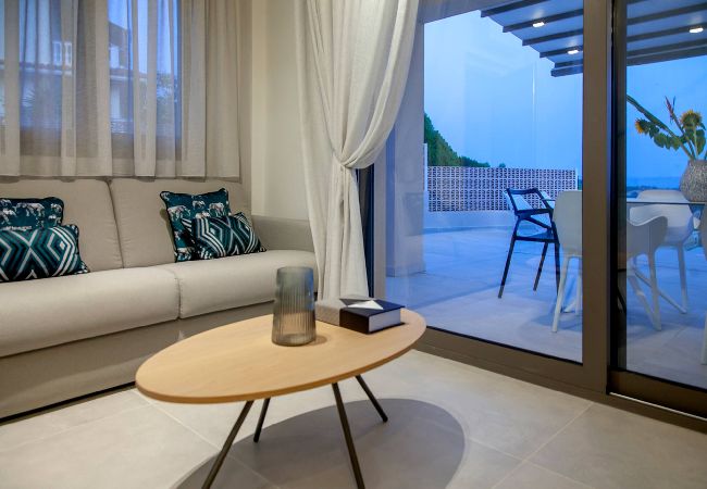 Upon entering Villa Andromeda, you come into the large living space which on one end is a fully equipped kitchen and on the front end is the lounge area that fills with natural light and has direct access to the private pool area. Also on this level is a double bedroom with ensuite bathroom. The living space is equipped with a double sofa bed for two additional guests.