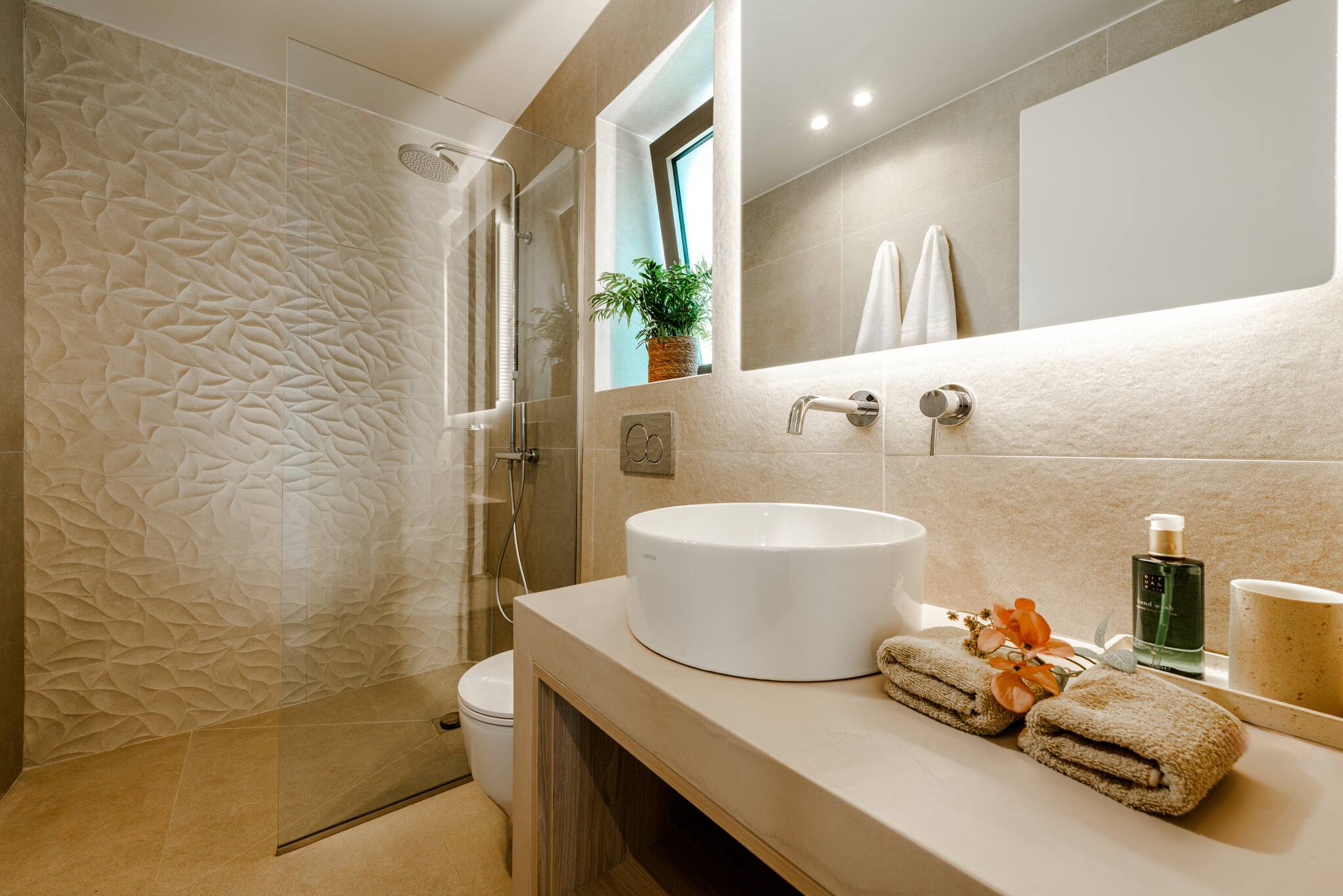 The villa offers three comfortable bedrooms, each with its own private bathroom with a shower. Every bedroom is designed with simplicity and comfort in mind, offering a peaceful place to rest after a day in the sun.