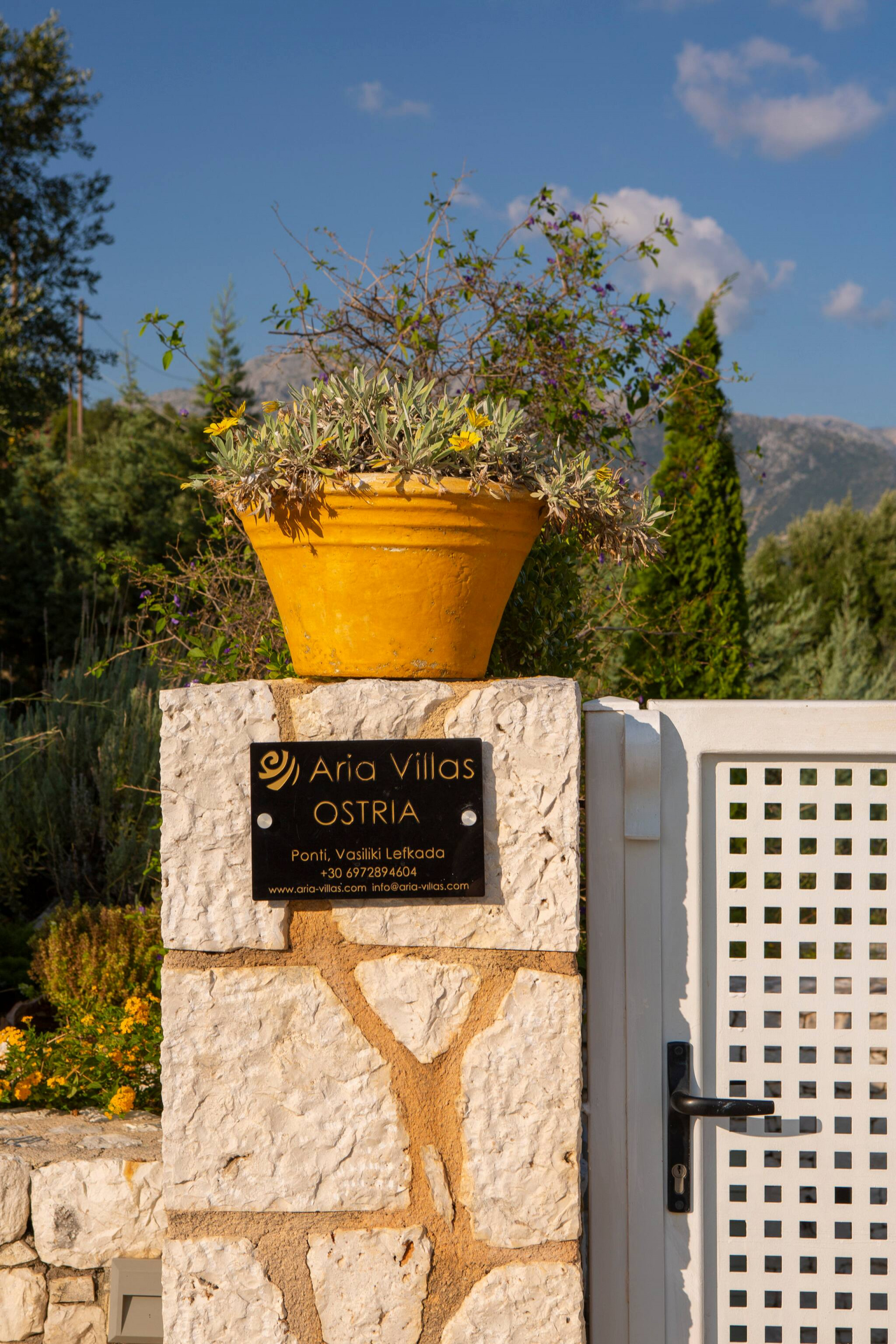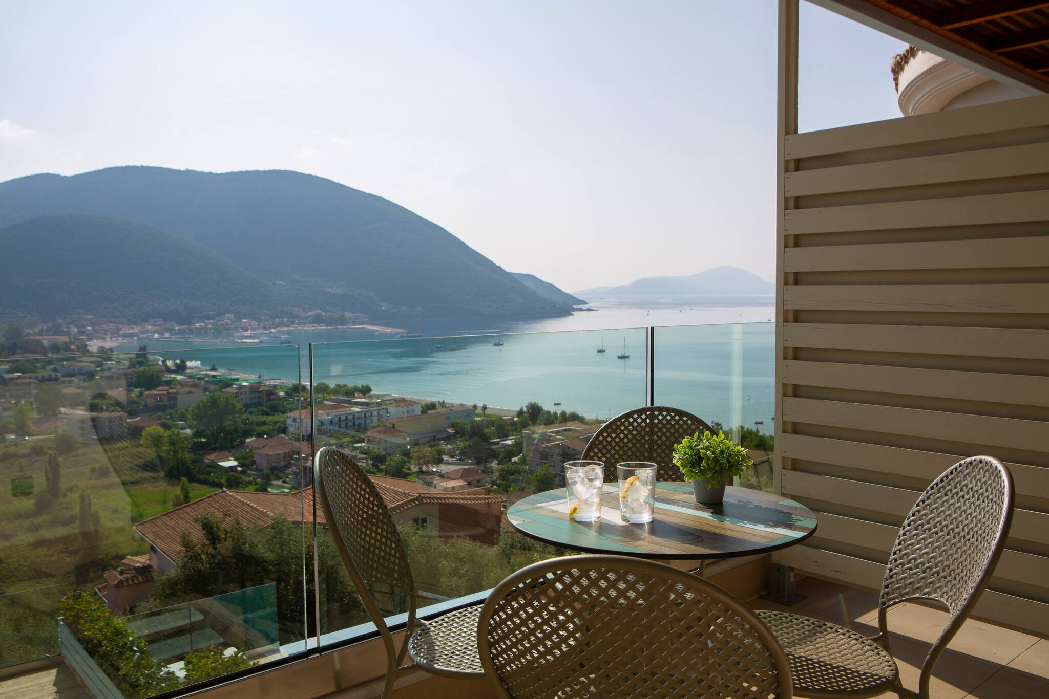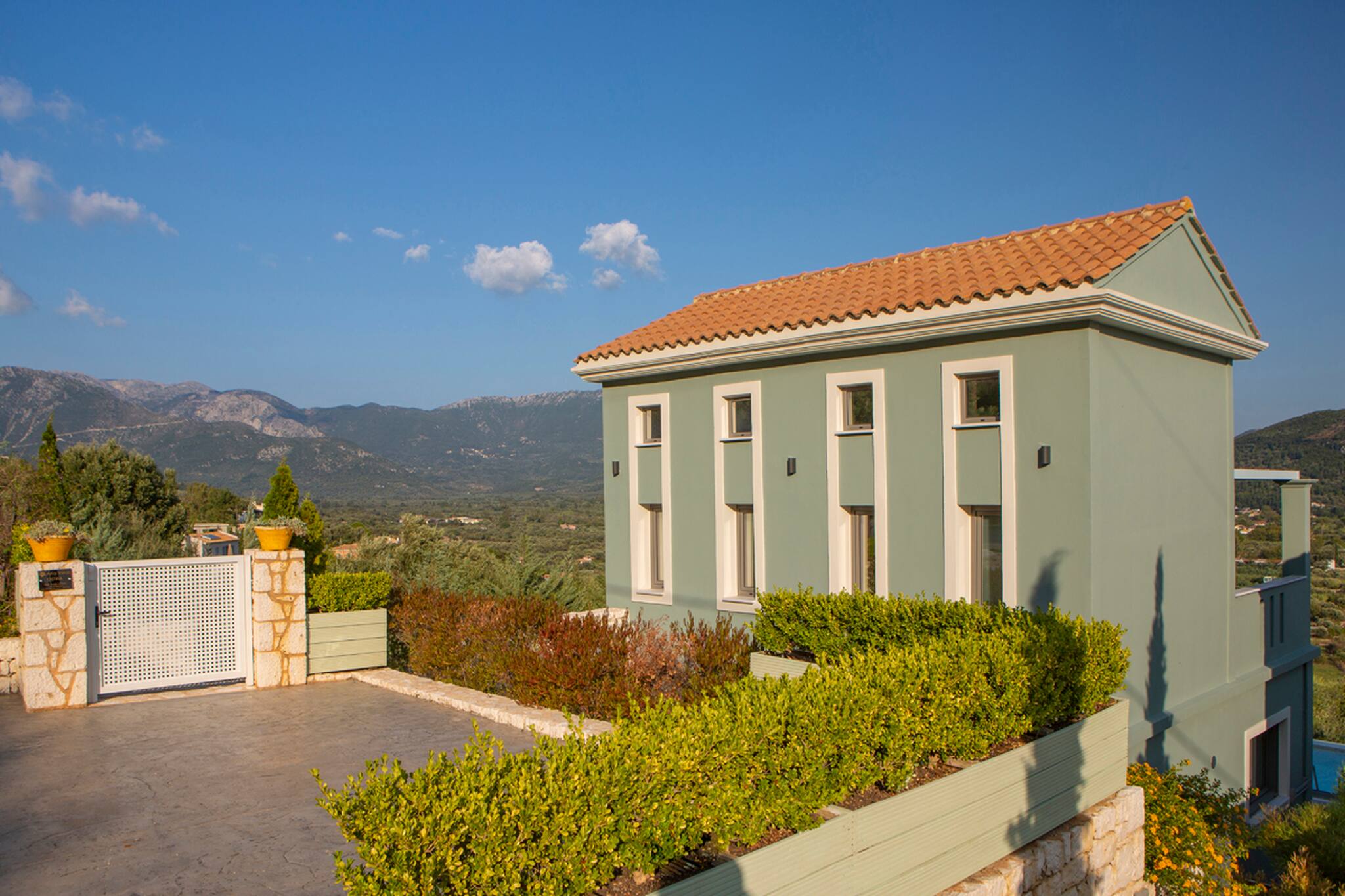 On the mountain above Vasiliki Village, with a breath-taking panoramic view across the Ionian Sea, is beautiful Villa Ostria in Lefkada.