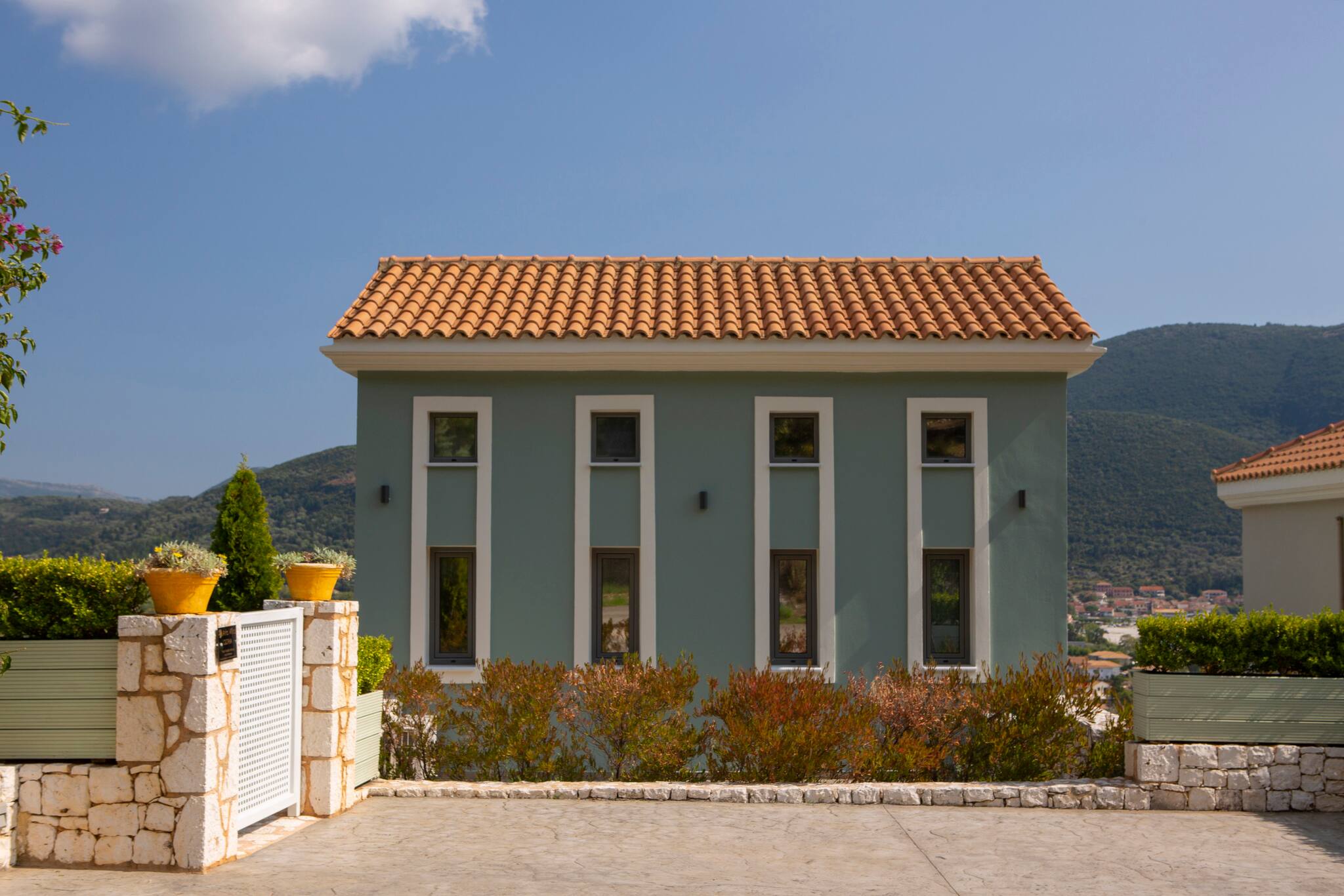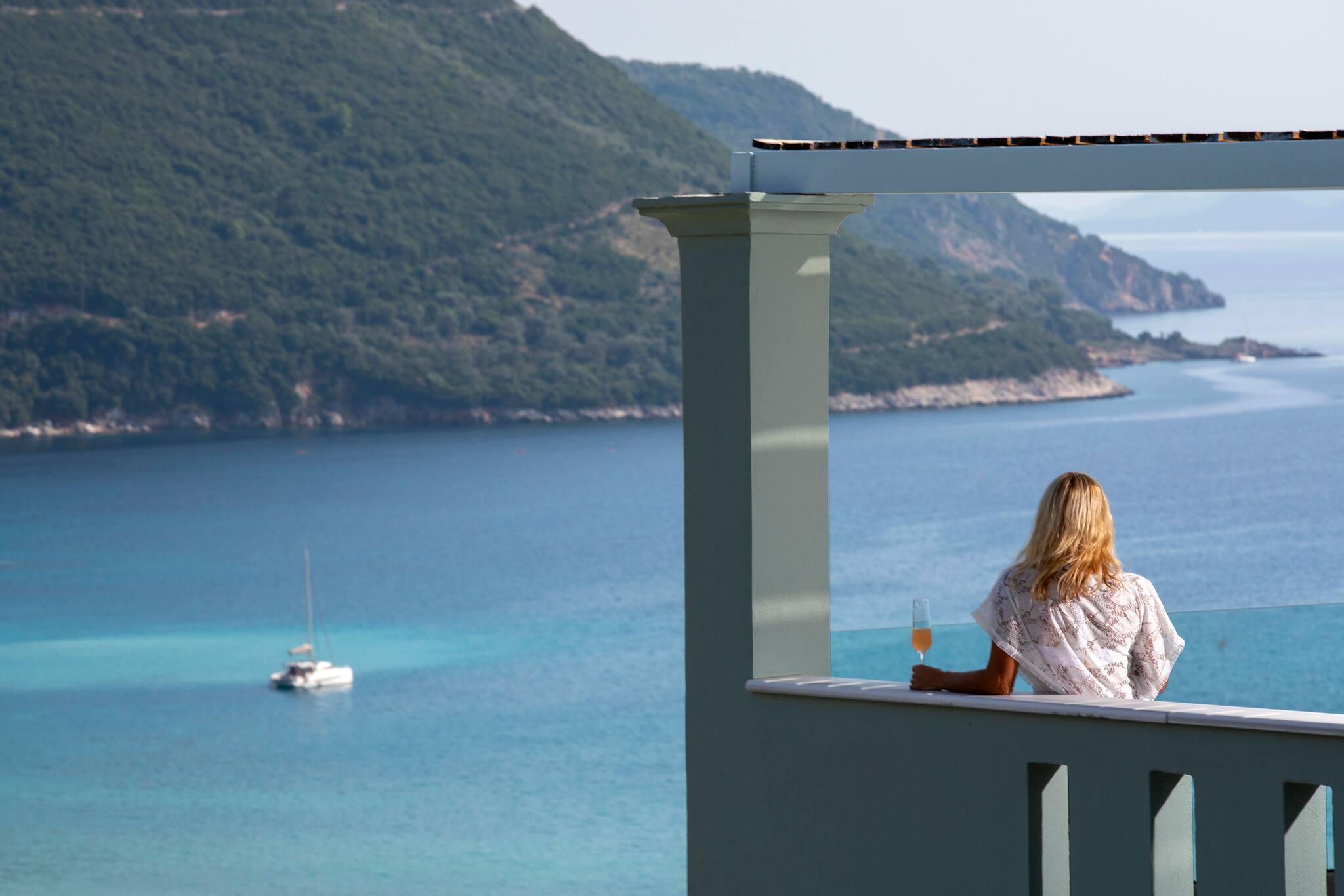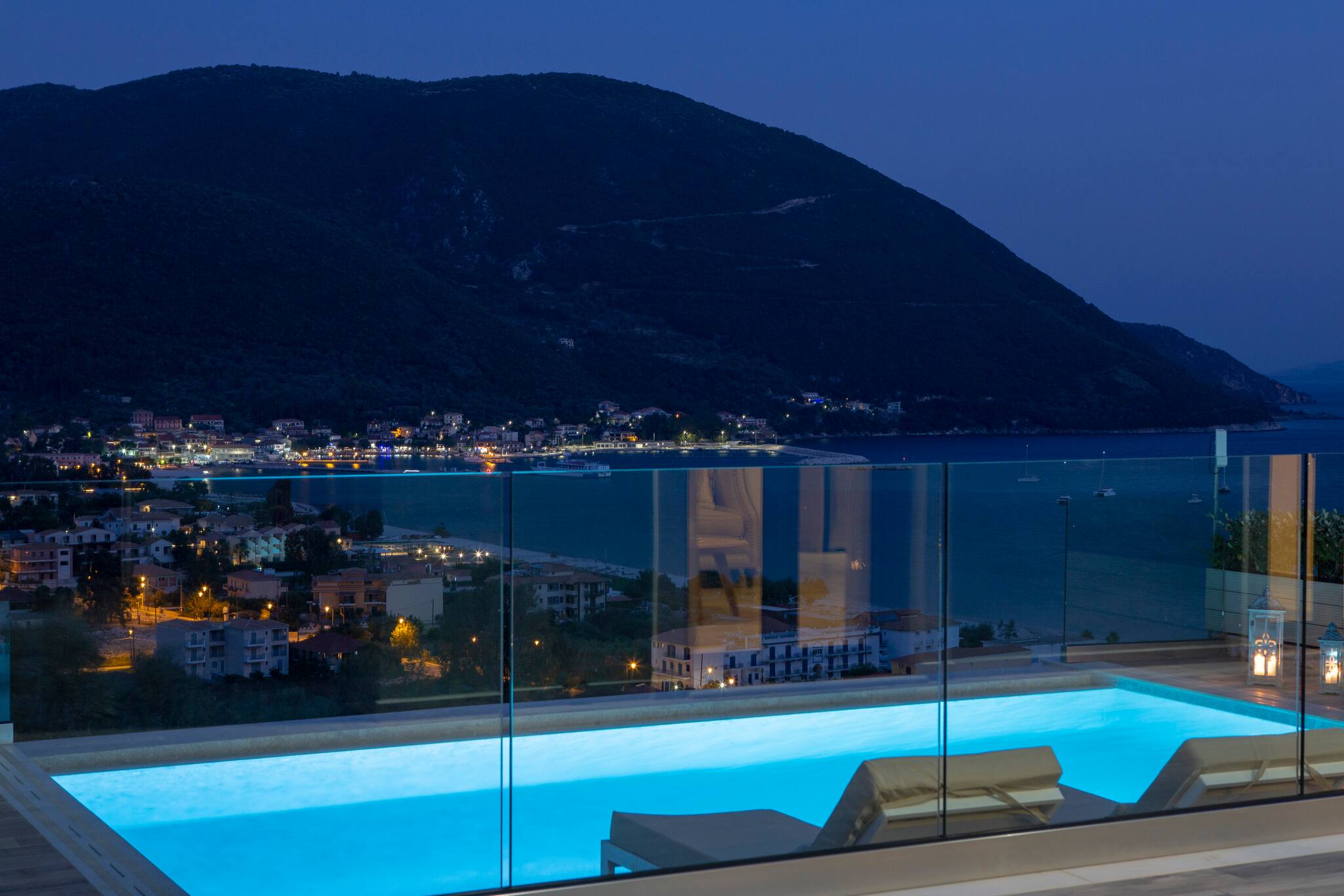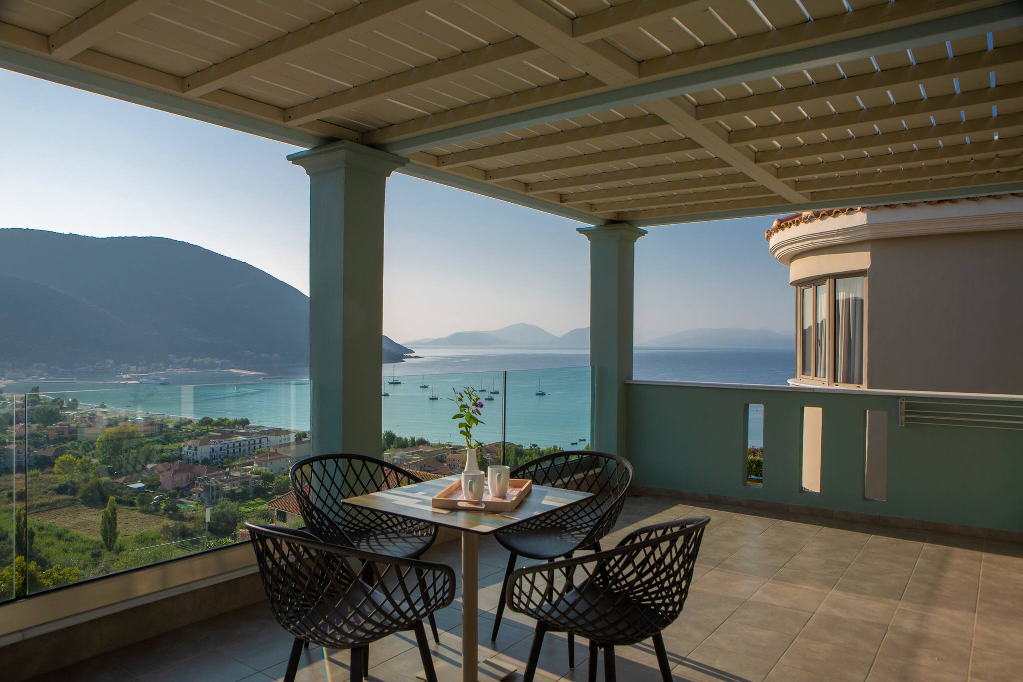On the mountain above Vasiliki Village, with a breath-taking panoramic view across the Ionian Sea, is beautiful Villa Ostria in Lefkada.