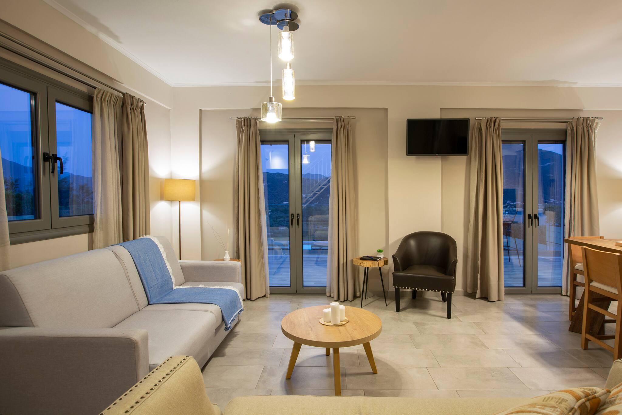 The privileged location of Villa Ostria is an absolute plus as it is at a short drive from the fishing village of Vasiliki and famous windsurfing hot spot of Ponti Beach.