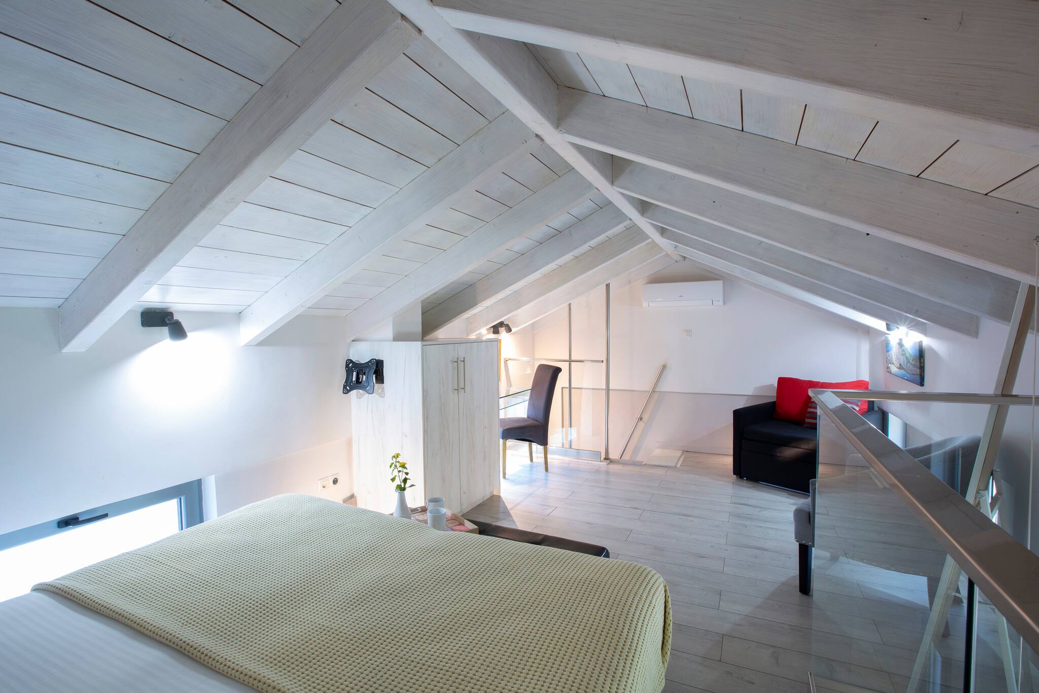 Up another flight of stairs which we recommend looking at through our photo gallery, as it’s not for all ages, is the second double bedroom. This second level space is designed as an attic style bedroom.